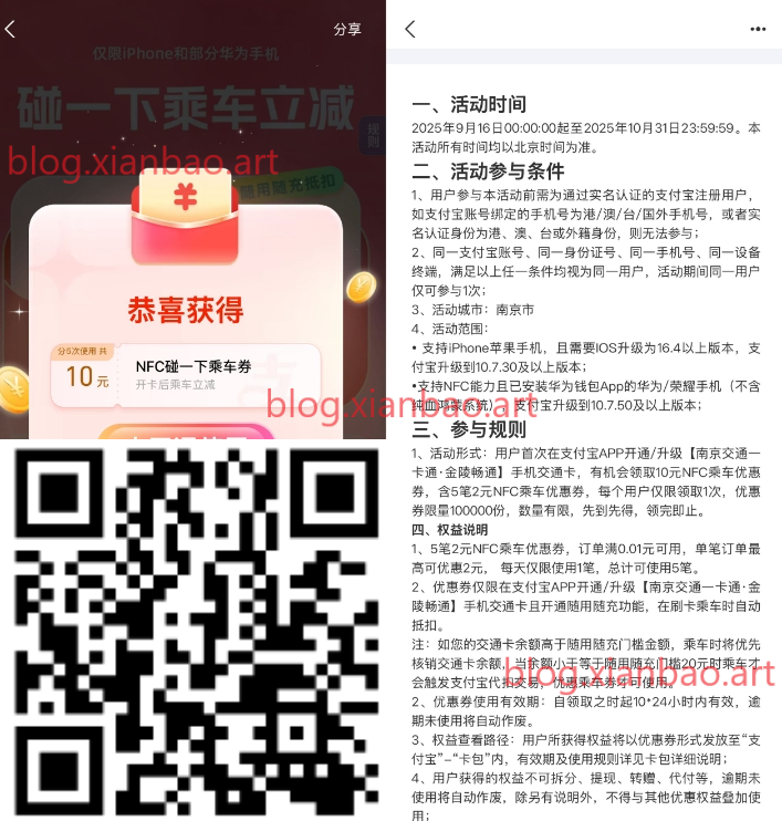 支付宝APP扫码,直接领10亓碰一下乘车券(2*5张),坐公交地铁都可以抵扣,暂时仅限苹果和华为用户领取!每天上下班坐公交地铁的很实惠