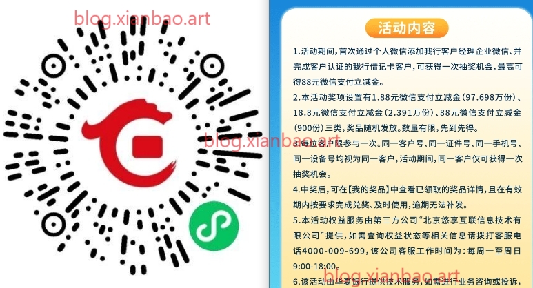 微xin识别,华夏yh首加企微抽1.88-88亓微xin立减金