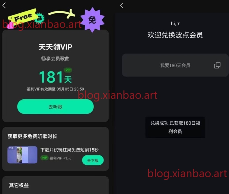 应用商店搜“波点音乐”或“qq音乐简洁版”,两个是一个,在APP上搜索“会员”-兑换码输入:我要180天会员,曲库和q音乐一样