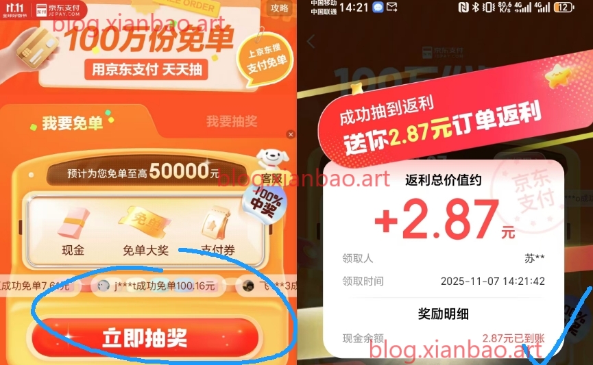 京东支付免单抽随机零钱