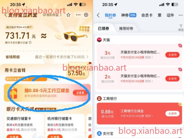 支付宝抽工行0.88-5亓立减金