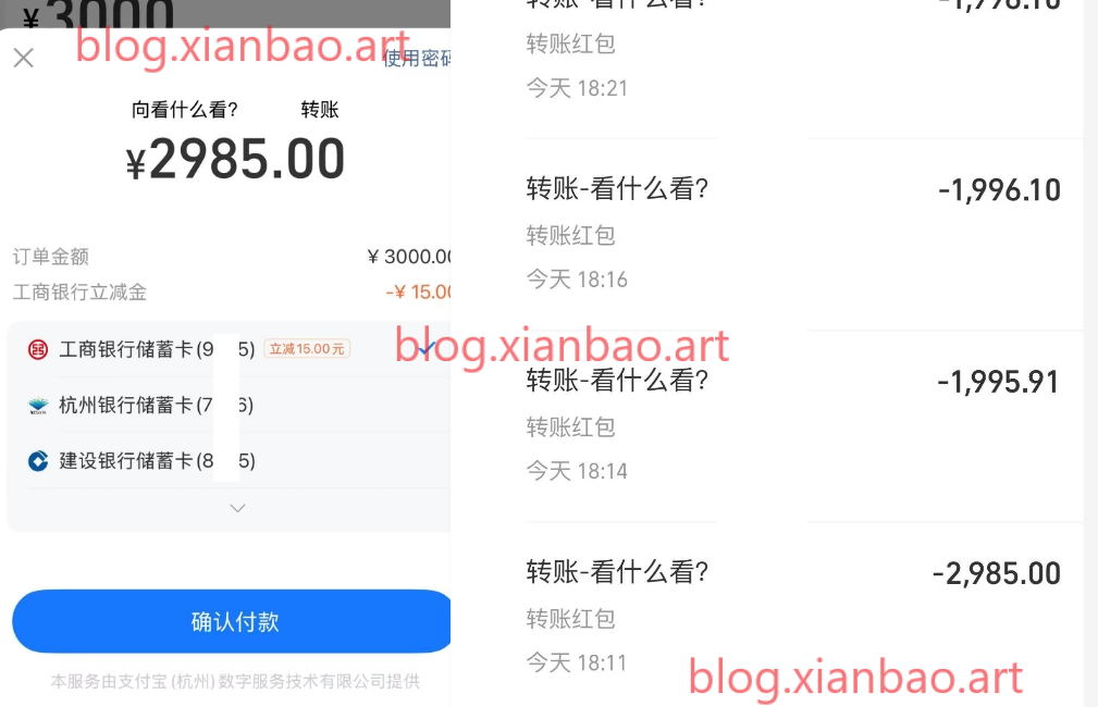 支付宝转小号或任意,使用山东工行实体卡,支付宝转账三次3000-15,5-6次2000-4左右