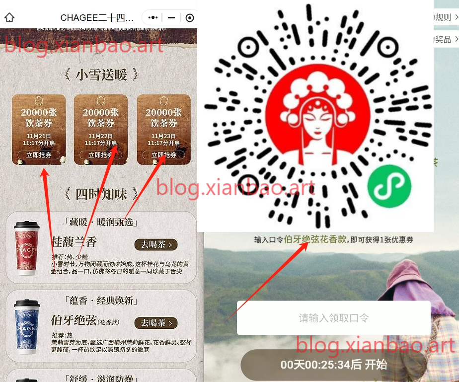 微xin识别,21-23号每天11:17免单2w,口令在页面有显示,如果自己不喝可以去闲鱼卖掉