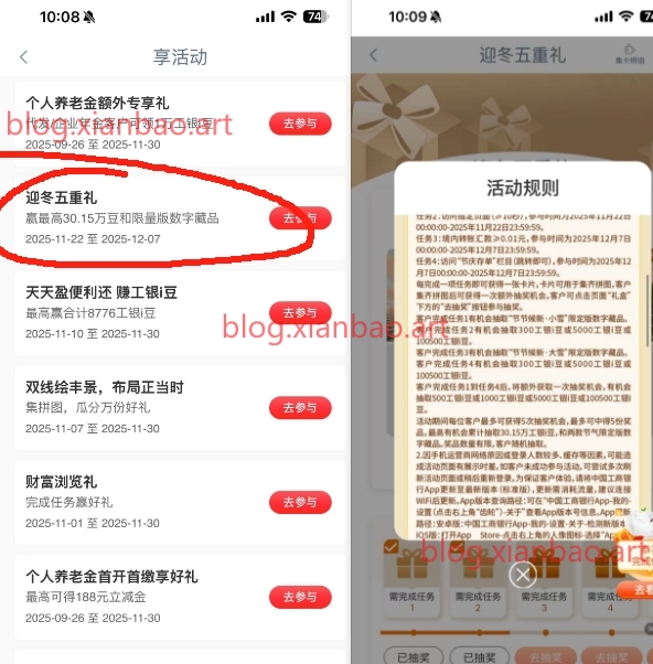 工行app-任务中心-享活动-更多-迎冬五重礼,可以换立减金,我的-工银i豆可以兑东西,或者攒着以后再换微xin识别,1100豆就可以换1立减金:mp://kVwTqfYuaJ4Ekap