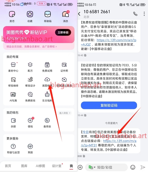 限移动,美图秀秀app,我的-美图相册,随便上传一张图,收到短信去移动云盘app-我的-领奖中心激活就到账登录号码zfb,闲鱼转不同名抵扣或其他线下线上都出。截止12:23有反馈没货了,后续补了再通知