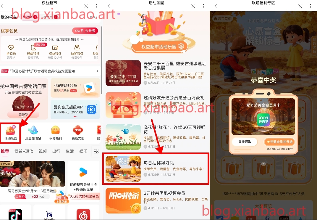 联通权益超市抽视频会员月卡
