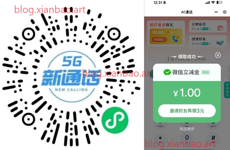 移动5g通话1-3亓微xin立减金