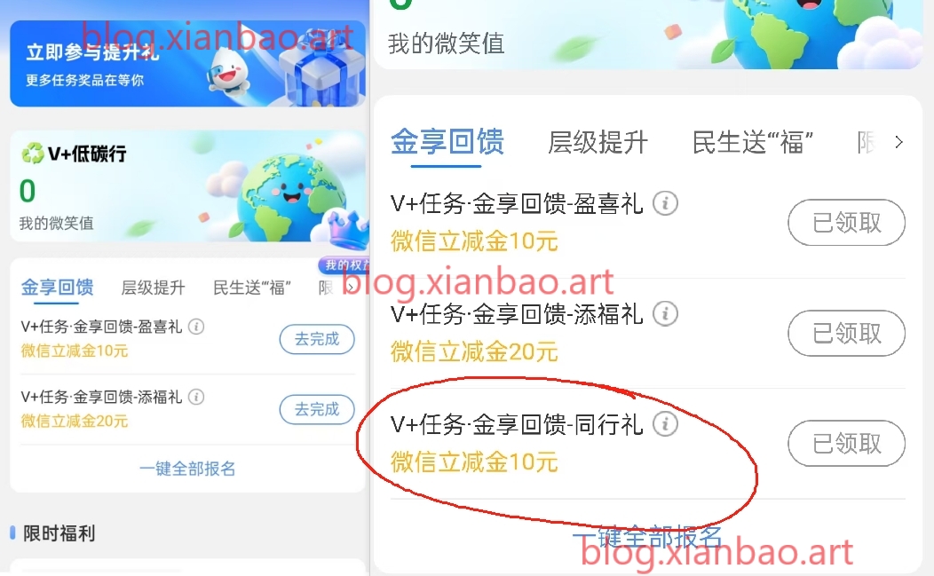 民生银行app-我的-权益中心,有这2-3个任务的,转入5w,可以立刻领30或40立减金,再转走即可