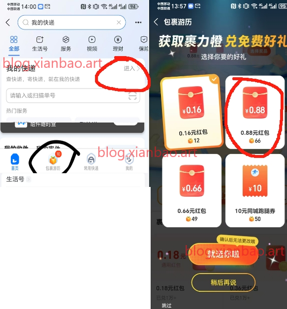 支付宝搜,我的快递,进入后,下面的包裹游历,弹出后选0.88,现在难度大需要2天才能兑换。闲鱼转不同名就可以抵扣