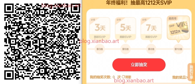下拉浏览有一次机会可以直接抽,邀约10人最高1212天会员