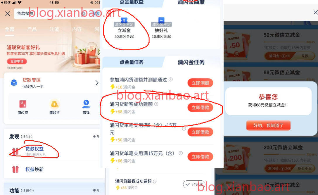 立减金没库存了,不确定会不会补,规则写不会补,试情况酌情参与,补了通知。浦发银行app搜:贷款权益,如图找88的这个,发帖时间有bug无论有没有额度都有88,申请完重回贷款权益页面自动弹,同页面兑换,需要查上征信。可能限一二类免核卡,电子卡自测(能申请就是可以)