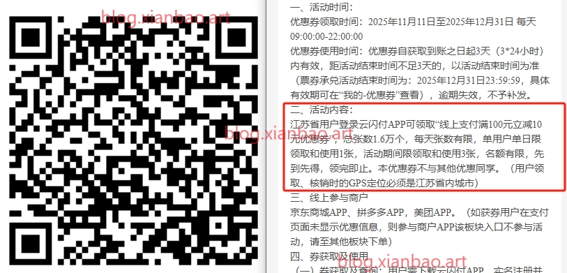 限江苏地区芸闪付可用,12月31日截止,每天9点开始,京东/拼多多/美团APP可用,单日限领和使用1张,活动期间限领和使用3张