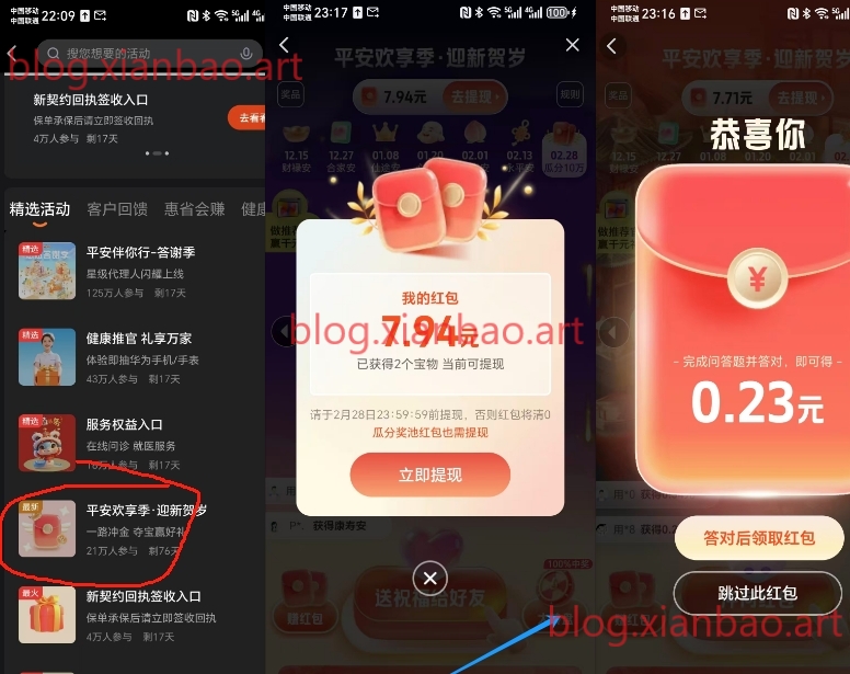 平安金管家app-首页活动-平安欢享季,全部做完有7-8块左右,比较麻烦需要答题,需app绑卡提(次日到账,提现到旺旺Q包然后再提卡)