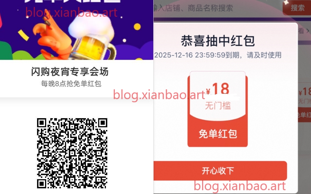 淘宝闪购每天20/21/22点抽18-18无门槛无门槛免单荭包!未抢到20-23:59可领夜宵专属5折!淘宝app识别或或顶部切闪购搜:666882,每人每天可以抽三次,每时间点一次 淘宝app识别,有超时一分钟免单卡
