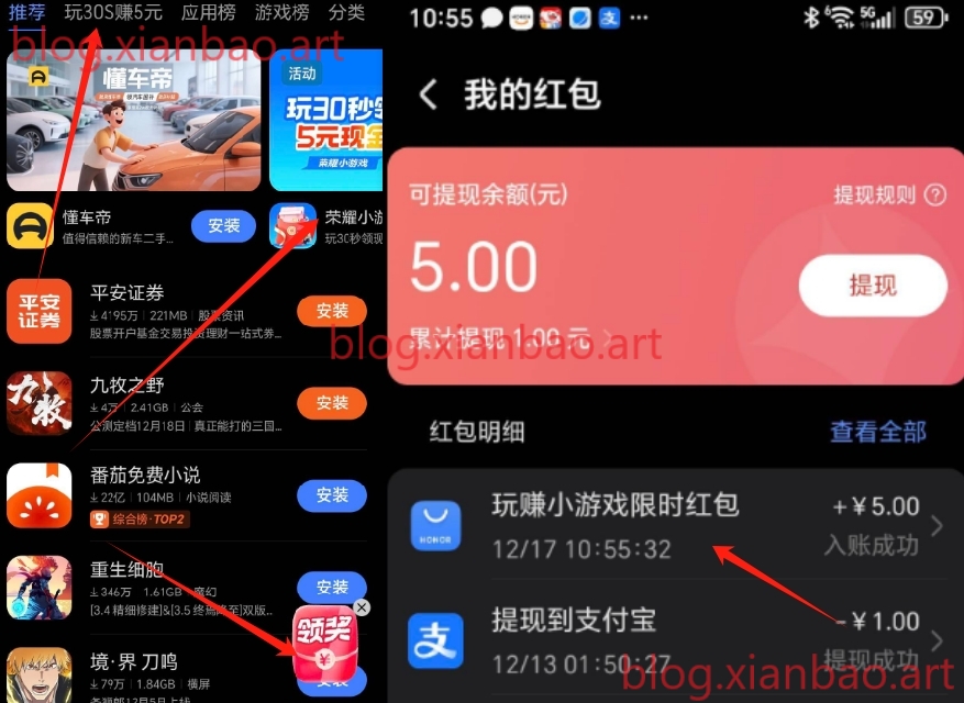 限荣耀手机,找到应用商店进去,如图,体验30s返回,弹窗领。