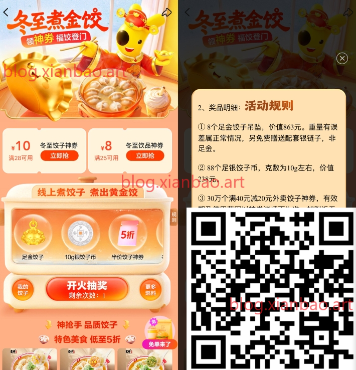 美团APP扫码,抽黄金或白银饺子,以及30w份40-20亓饺子神券