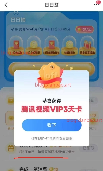 买单吧,签到,有三天腾讯视频会员兑换码 ,要有卡才行