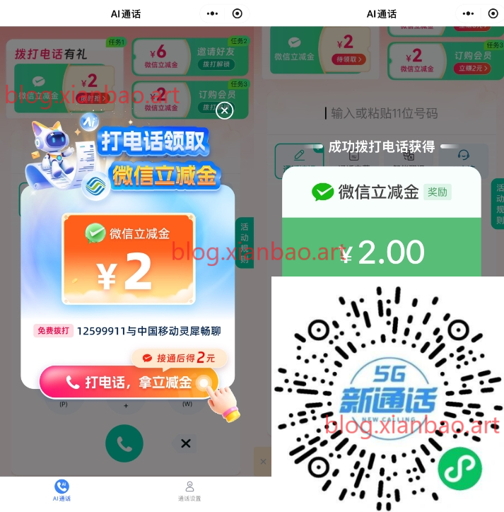 没玩过的试试,所有手机都可参与了!微xin识别,移动用户随便打个AI通话,2亓立减金