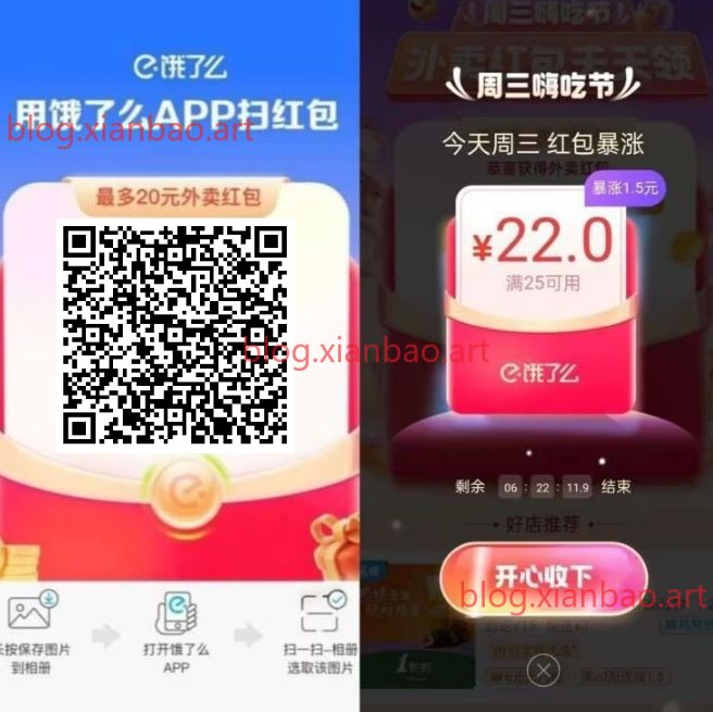 饿了么app(现淘宝闪购app)识别,今天面额比较大,试试25-22/18等