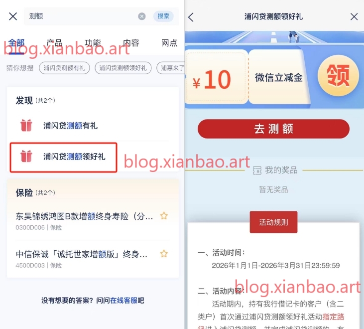 浦发测额10亓微xin立减金