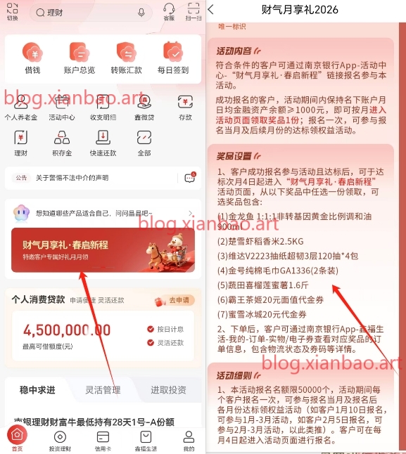 南京银行app首页或活动中心找到如图报名,需上一月月日均低于1000可以报名(参加过每月20立减金的可以先取走,下月再报名),成功报名,保持名下账户月日均>1000,放卡余额即可,次月4号可领