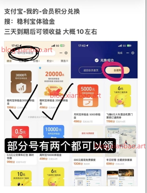 zfb-我的-会员积分兑换,搜:稳利宝,三天到期后有收益,有1-10左右,部分领不到