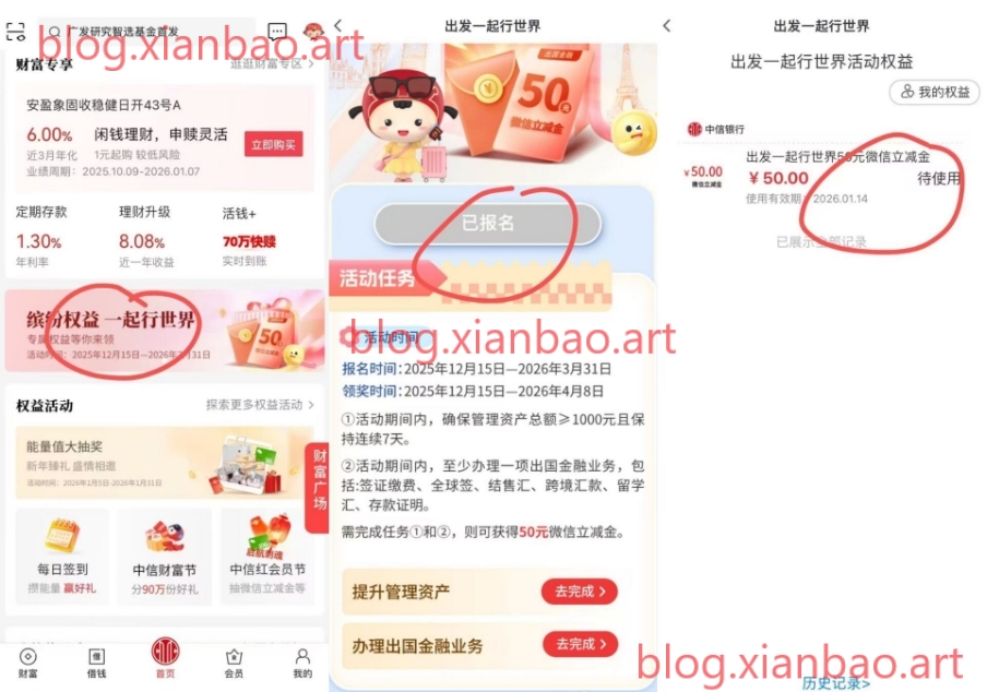 中信app首页如图进,报名完成两个有50亓微xin立减金,显示特邀忽略,部分人报名完不用完成任务,直接就能领,自测