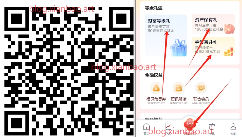 微xin识别底部会员,或建行生活app搜:财富会员,进”资产保有礼”,等级礼/保有礼/晋升礼上方三个点开都看看