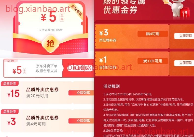 京东app切外卖,点横幅进入,分享好友均可得10亓外卖券和4-3亓叠加券,就是点外卖立减13亓。或复制:14:/复制打开京东app,领好友送你的大额外卖券¥N8Q2CFf6PF¥ ZH9112