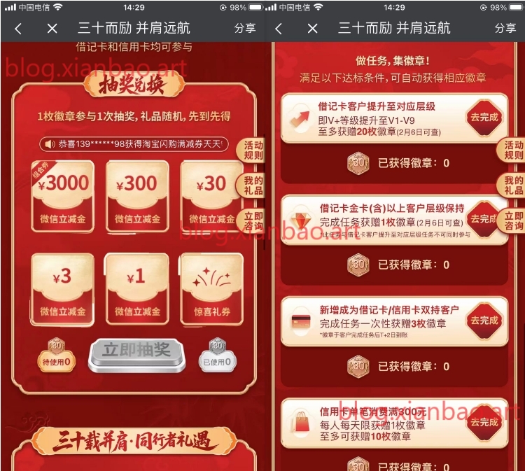 民生银行APP搜:30周年感恩回馈,达成条件看图二,符合自测
