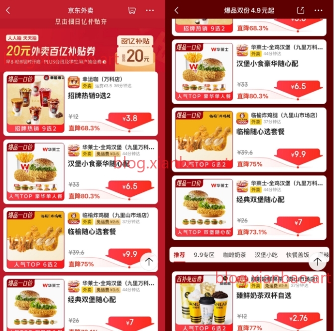 可直接领20-12,奶茶3.8起,汉堡只要6.5:1:https://u.jd.com/E6ORfi2 2:https://u.jd.com/EDOR7KS 3:https://u.jd.com/E1O7M64