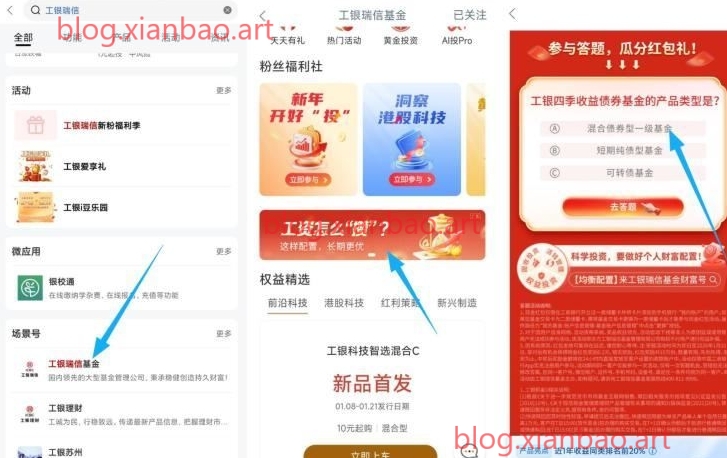 工行app搜:工银瑞信基金,场景号进入,横幅-工资怎么攒,选择A,可得0.2亓