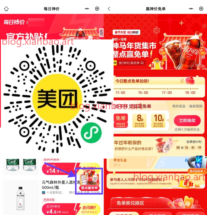 美团闪购11/15/17/19点抽免单券