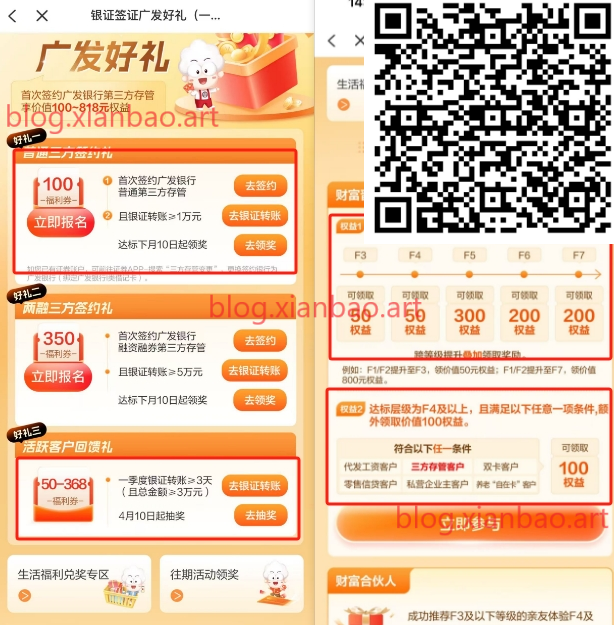 1:识别报名,app首页-活动广场-找到银证签约广发好礼,找任意一个开通过的证券换绑广发卡(新开也行)。
