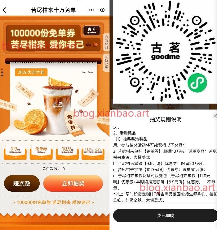 微xin识别,3人助力得3次机会,抽10w份古茗咖啡免单券