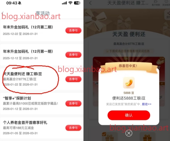 工行天天盈便利抽最高5888i豆
