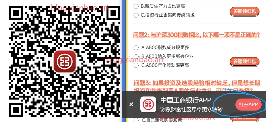 微xin识别,跳转工行下拉找到如图,点进三个答题,答案分别为:CCAA,火爆一直点即可。