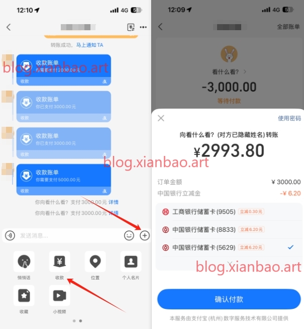 zfb找到对方的聊天框,+号点开,小号发起收款,大号用中信卡1k-5,次数自测,需使用中信卡,发帖测试多张卡都有或全国通用