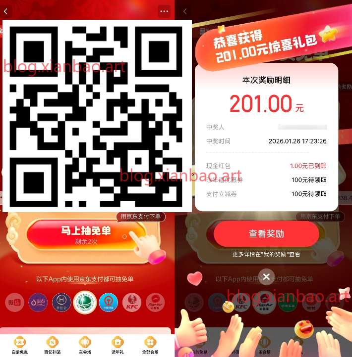 京东app识别,选择历史订单抽,可得随机零钱或最高免单