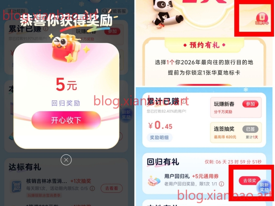 云闪付app首页-玩赚中心,有个刷新浆励自测点一下有的人会跳出来5通用券,还有页面可以预约6号开始集咔,2.1-2.5日 预约领一张卡