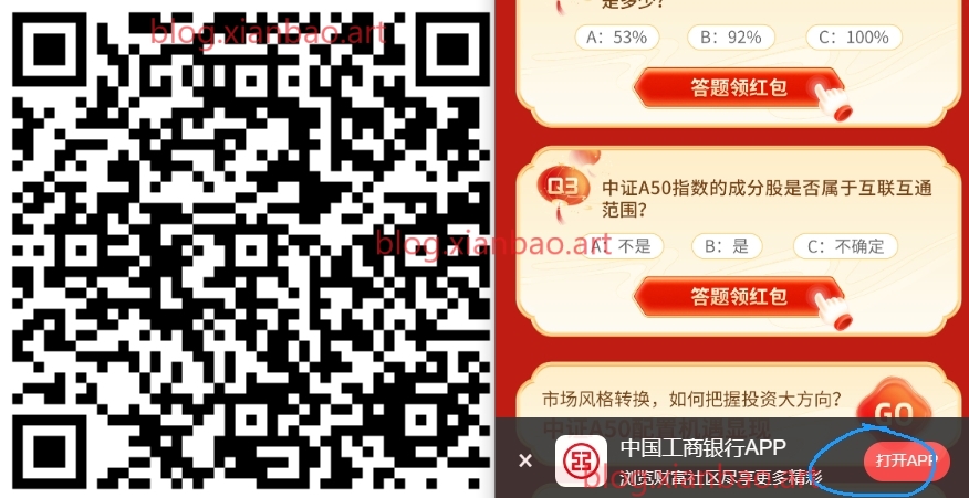 微xin识别,跳转工行下拉找到如图,点进三个答题,答案分别为:ABB,火爆一直点即可。