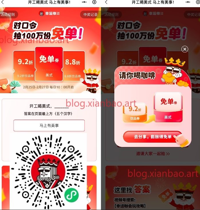 微xin识别,输入口令“马上有美事”,然后邀请1人膨胀抽免单券