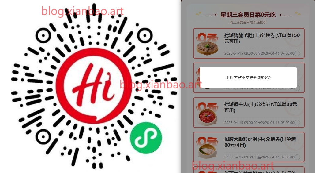 微xin识别,5选1领半份虾滑/肥牛/毛肚券等,限周三可用,刚好要吃海底捞的可以领下