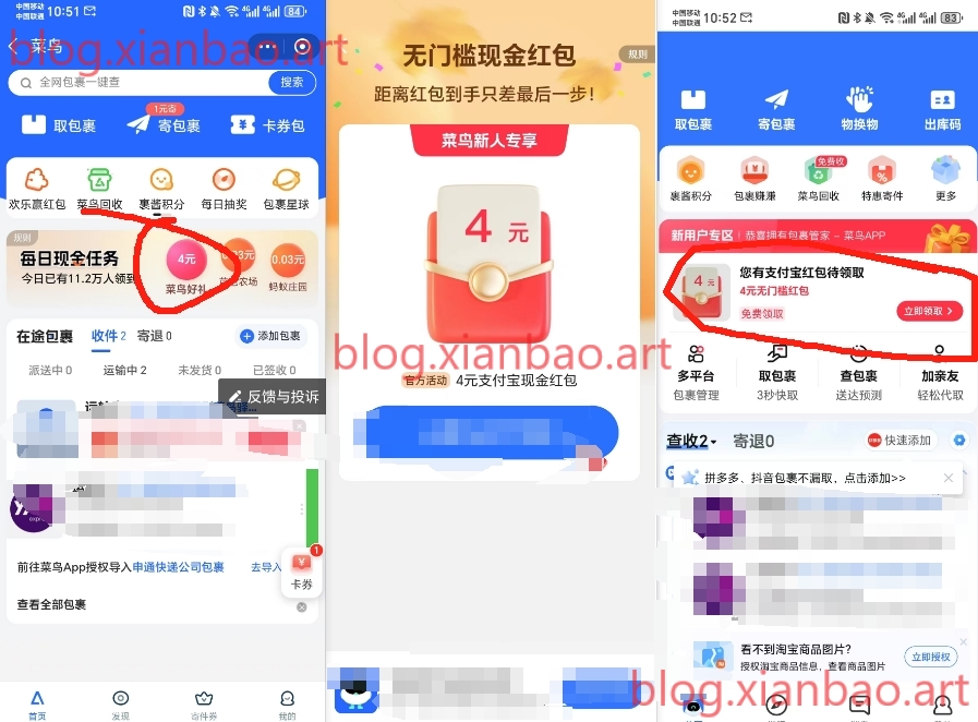 支付宝搜:菜鸟裹裹,如图显示有个4亓zfb立减金,需下载登录菜鸟app,没有的切号看看