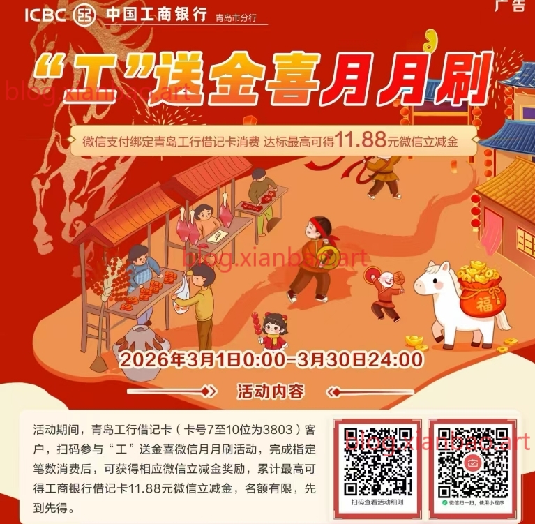 限青岛工行借记卡11.88立减金