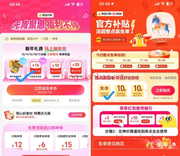 美团app-闪购-底部 抢神券,10点11点12点16点17点,卡点加码16-16通用和14-14食材。美团app搜:神价,右下角悬浮进11点15点17点19点,卡点加码抽3.5w份汤圆。