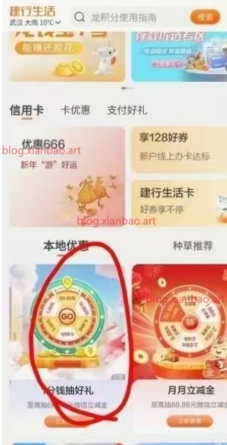 4:建行生活定武汉-本地优惠-0.01抽好礼,本地用户直接,外面定gps