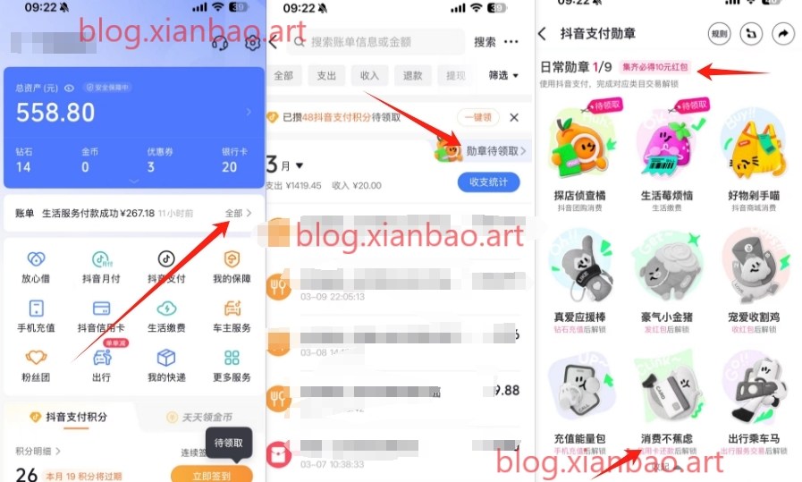 抖音集勋章10亓零钱