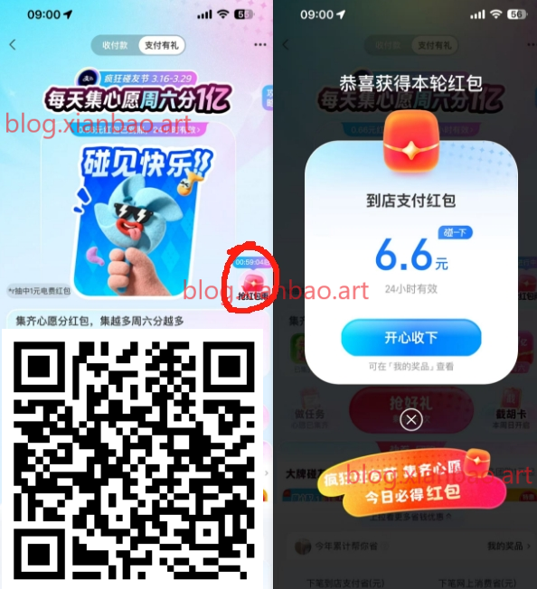 支付宝整点6.6亓碰一下荭包