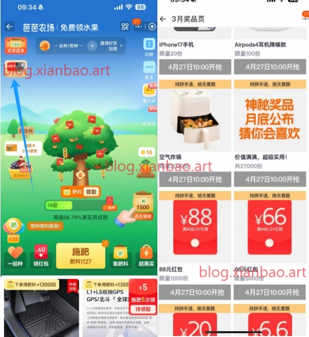 淘宝搜:芭芭农场,部分人左上角有「打卡领奖」,4月只要签够27天抢2千份炸锅 ,1千份88+6千份66、2.7w神秘,签够就能拿,27日10点拼手速